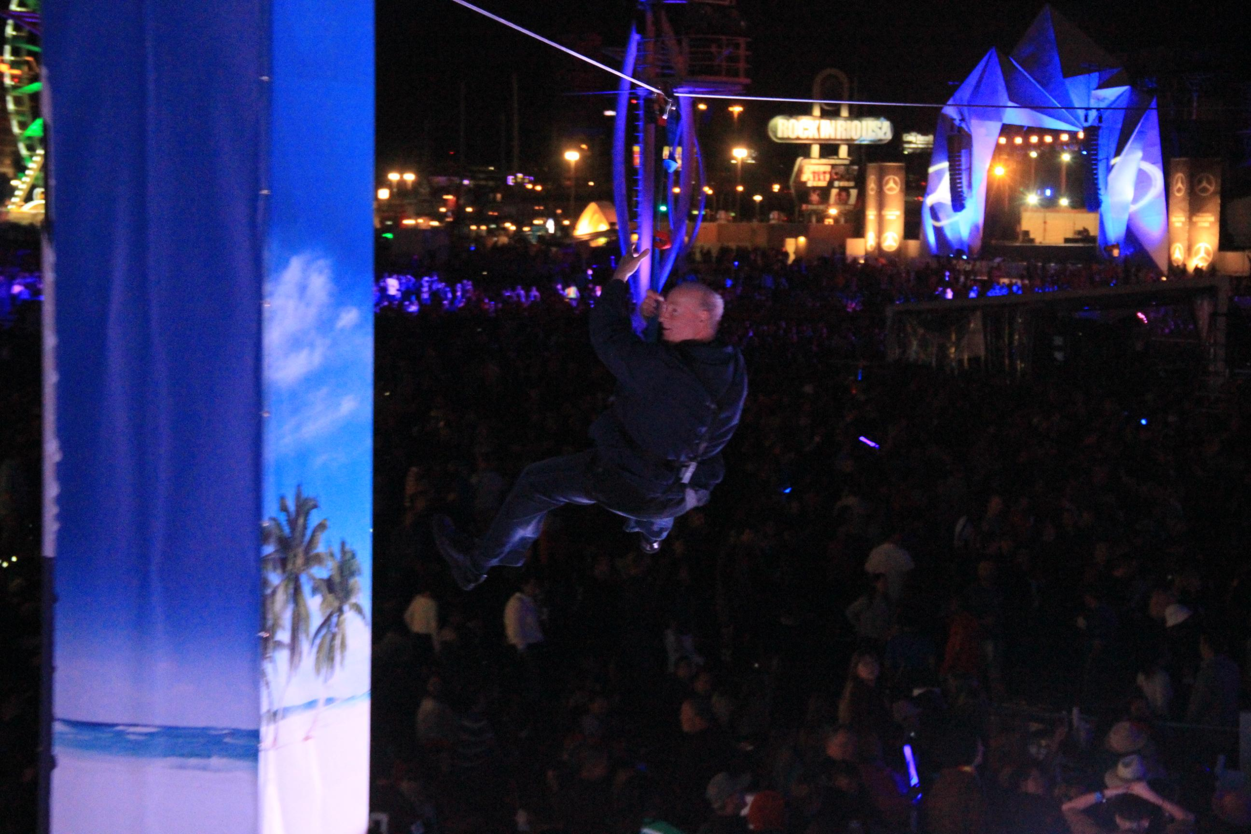 Greenheart designed and operated a zipline in the Rock In Rio event grounds. Riders launched from an iconic tower and soared overhead of the crowds.